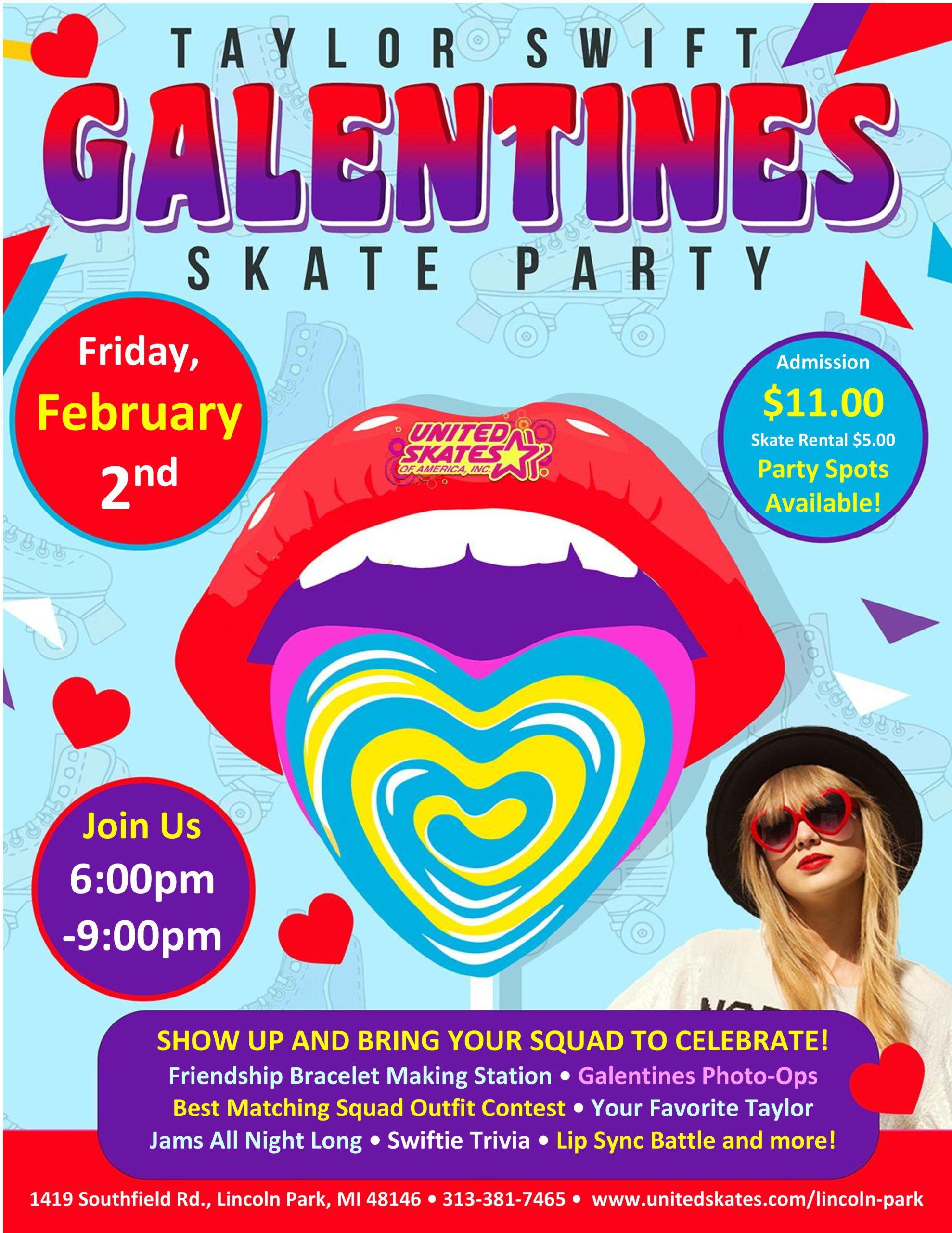 It's a Galentine's Skate!!! Dress as Taylor Swift and get entered into a Costume Contest! Playing the Best of Taylor Swift! Tuesday, February 13th 6:00pm-8:30pm Admission $10.00 Skate Rental $5.00 We are taking bookings for Girl Scout Troops! Call Madison Today for more information 313-381-7465 All children 12-17 years of age must come into our […]