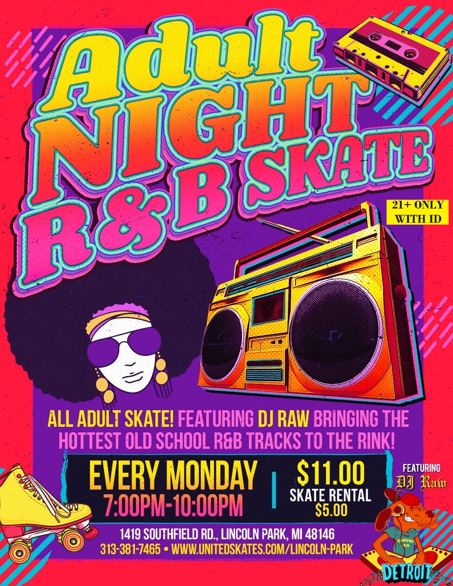 Adults Only! This takes place every Monday Night Starting on March 11th 7:00pm-10:00pm Featuring DJ Raw bringing the HOTTEST R&B track of yesterday and today! Admission $11.00 Skate Rental $5.00 21+ with valid ID