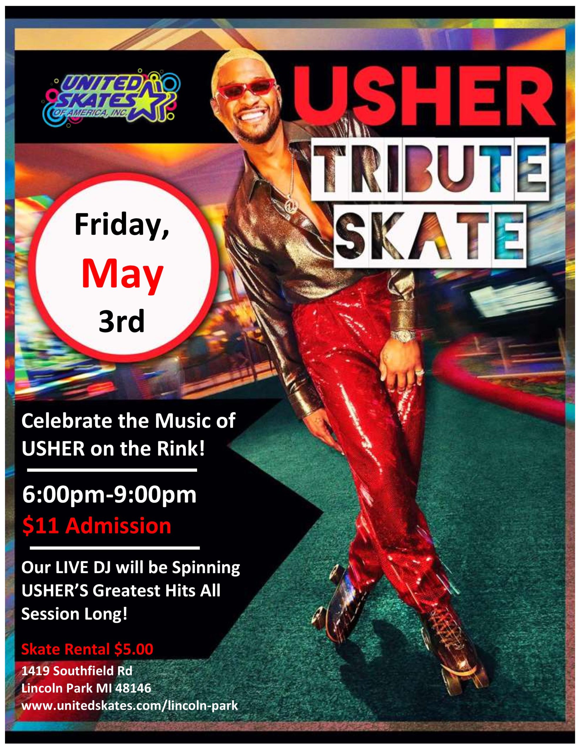 Bring the Family and skate to all the Greatest Hits of Usher and other R&B Hot Hits! Friday, May 3rd 6:00pm-9:00pm Admission $11 Skate Rental $5 All children 12-17 years of age must come into our facility with a parent or guardian that is 25 years of age and older. United Skates of America Lincoln-Park […]