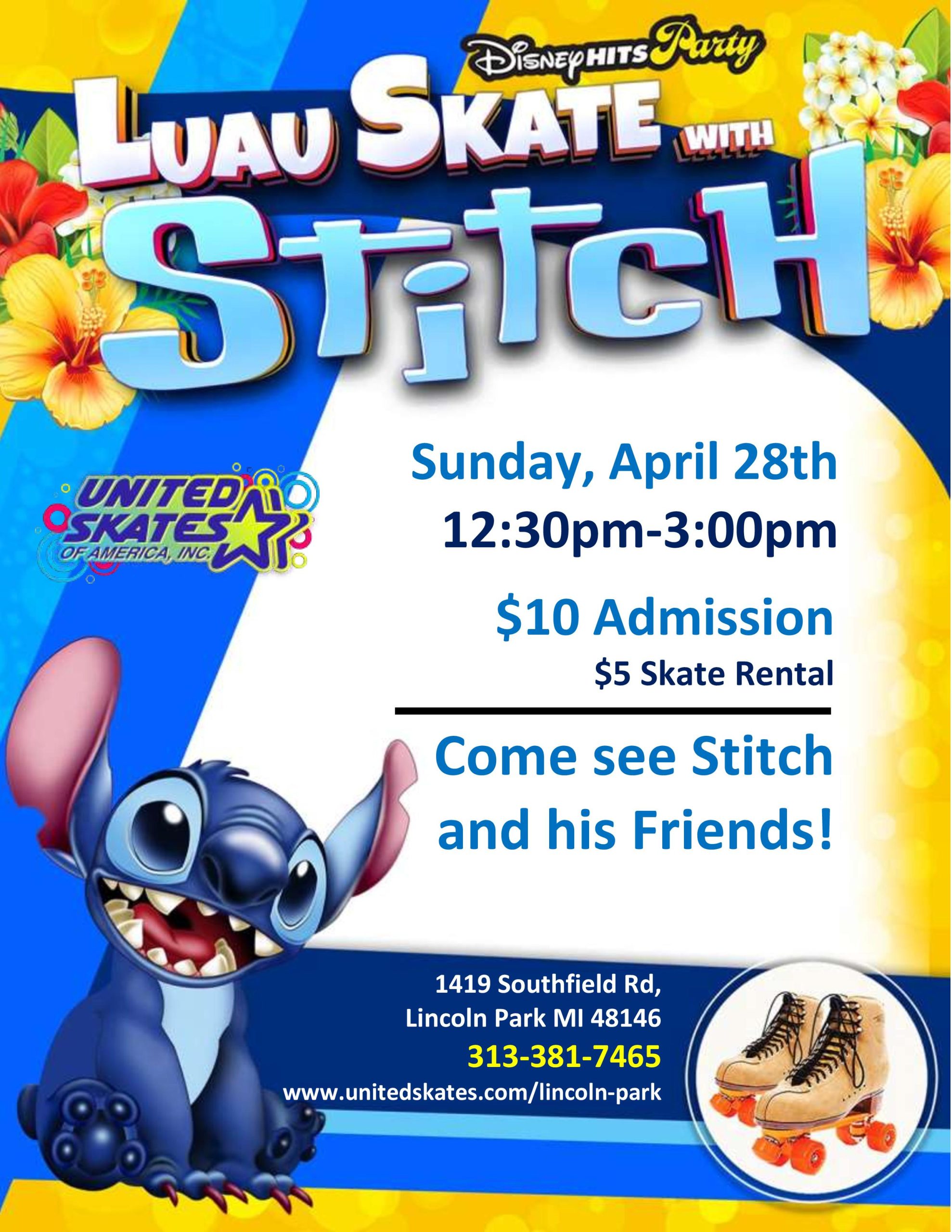 It's STITCH Time!! Get ready to hula! Join us at our Stitch Luau Skate! Make sure to bring your cameras, picture opportunities are available! Sunday April 28th 12:30pm-3:00pm Admission $10.00 Skate Rental $5.00 All children 12-17 years of age must come into our facility with a parent or guardian that is 25 years of age […]