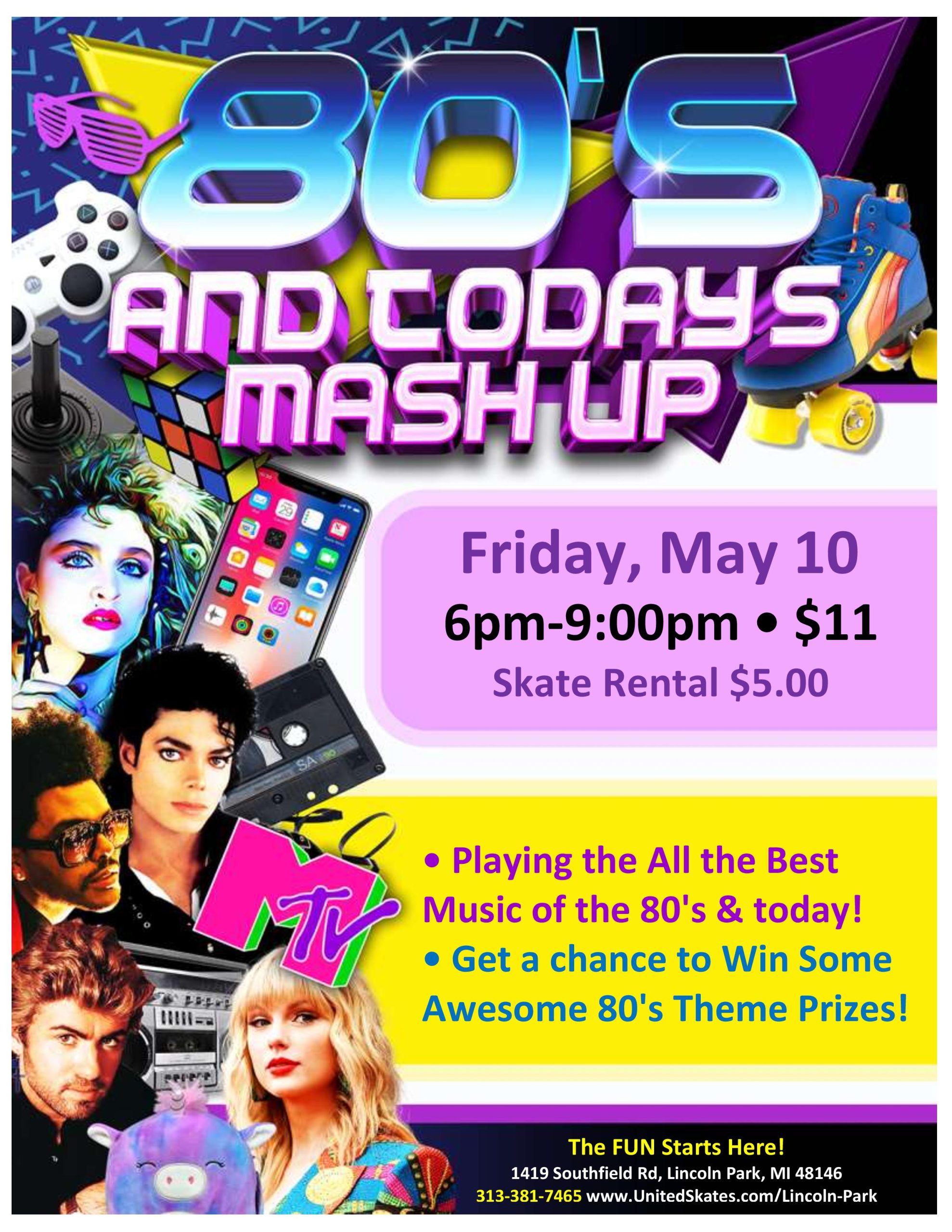 Are you ready for a trip back to the 90s? Friday, May 24th 6:00pm-9:00pm We will be playing the hottest hits from the 90s and TODAY! Admission $11.00 Skate Rental $5.00