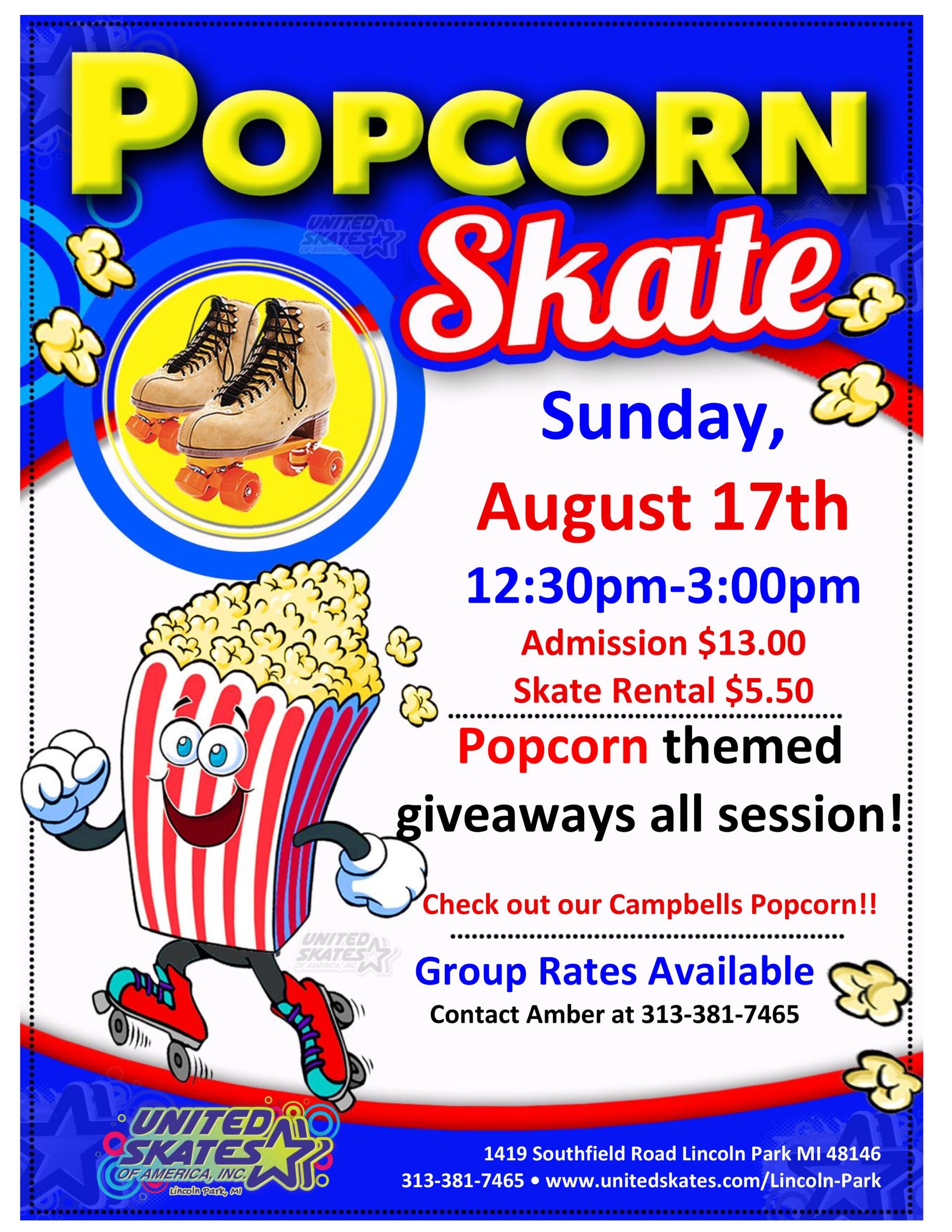 🍿🎉 Poppin’ Into National Popcorn Day – Early! 🎉🍿We’re celebrating National Popcorn Day a little early — and you’re invited to join the fun! Get ready for a day full of poppin’ excitement, crunchy fun, and chances to win popcorn-themed prizes all session long! Sunday, August 17th 12:30pm-3:00pm Special Summer Deal $5 Admission (reg $13 Admission) Skate Rental $5.50 🌽 Bonus Treat:Love Campbell’s Popcorn? We’ve […]