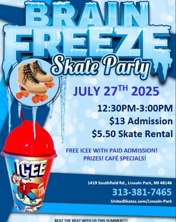 Enjoy a refreshing day of skating paired with delicious sno cones. Bring your friends and family for a fun-filled experience with music, games, and more. Thursday, August 21st 12:30pm-3:00pm Admission $11.00 Skate Rental $5.50 Free sno cone with every paid admission Book your daycare, YMCA, Summer Camp etc. Call our Sales Team 313-381-7465