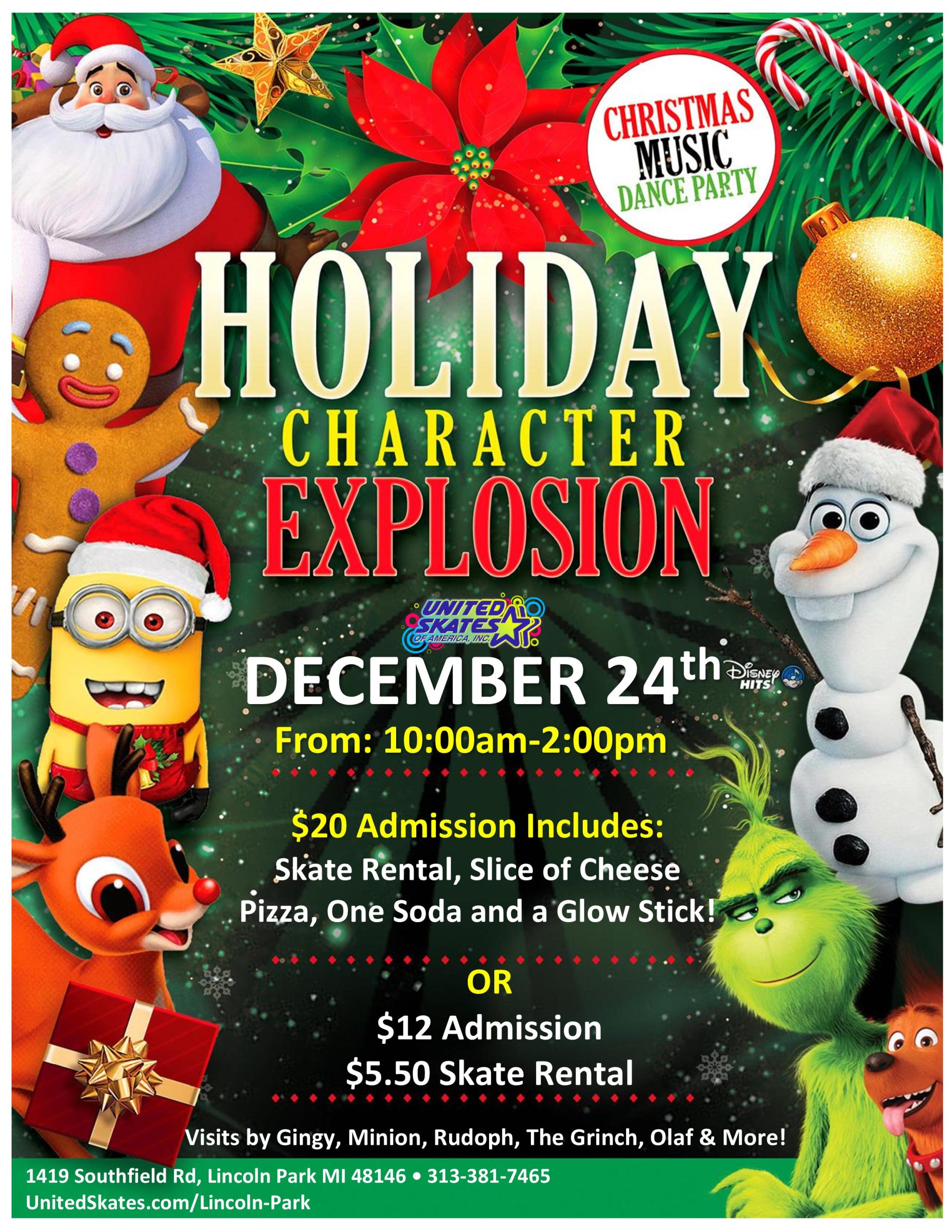 Get ready for a fun holiday night out with our FREE Dinner Skate with The Grinch! Monday, December 23, from 6:30 pm to 9:00 pm Admission is $16 and includes skate rental, a slice of pizza, and a cold soda! Enjoy pop-up visits and photo ops with The Grinch! This is the perfect holiday event […]