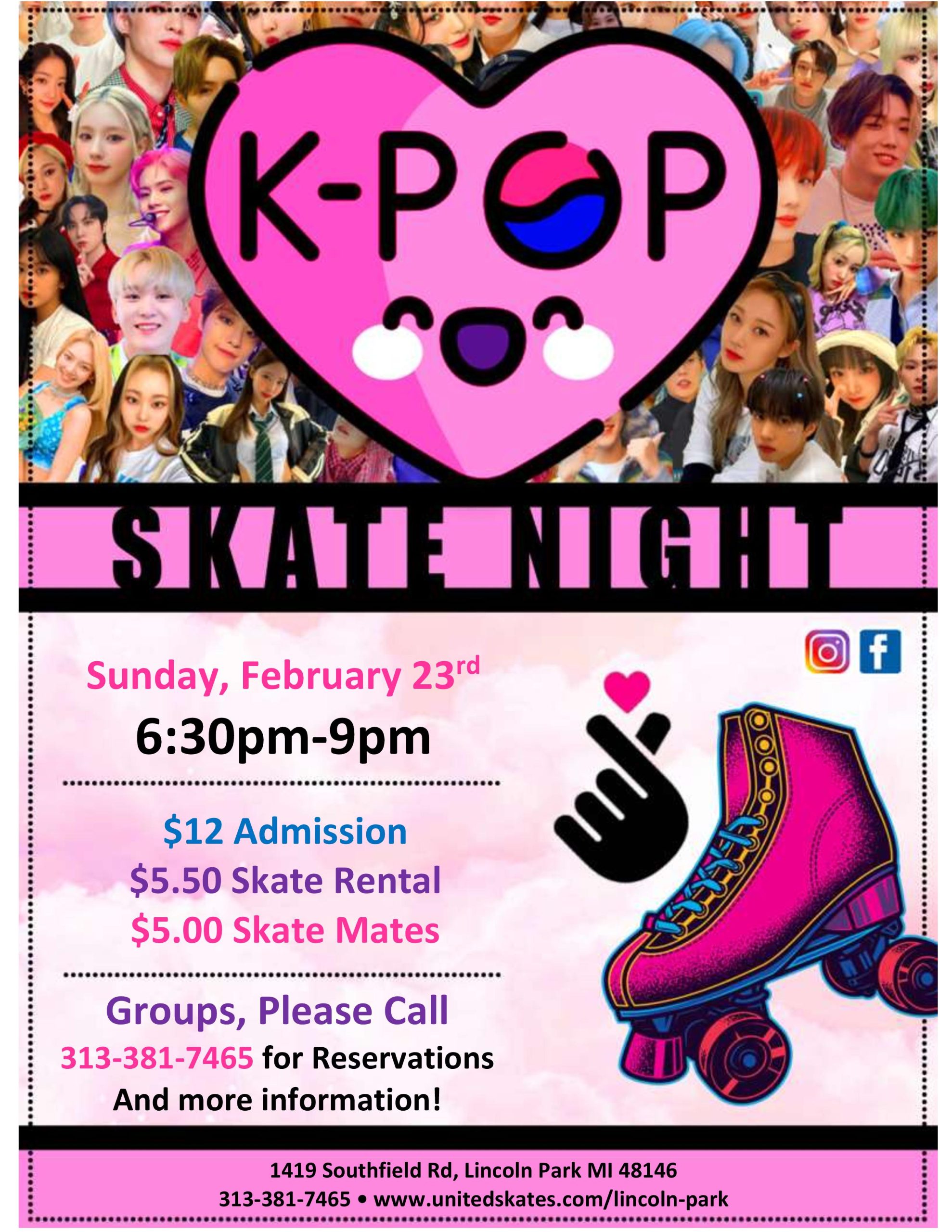 It’s time to dedicate a Night to K-Pop! If you love BTS, BLACKPINK, TWICE, SEVENTEEN, & more this night was made for you! Join us on Sunday, February 23rd 6:30pm-9:00pm Admission $12.00 Skate Rental $5.50 We will be playing K-Pop Music & More all session long! |