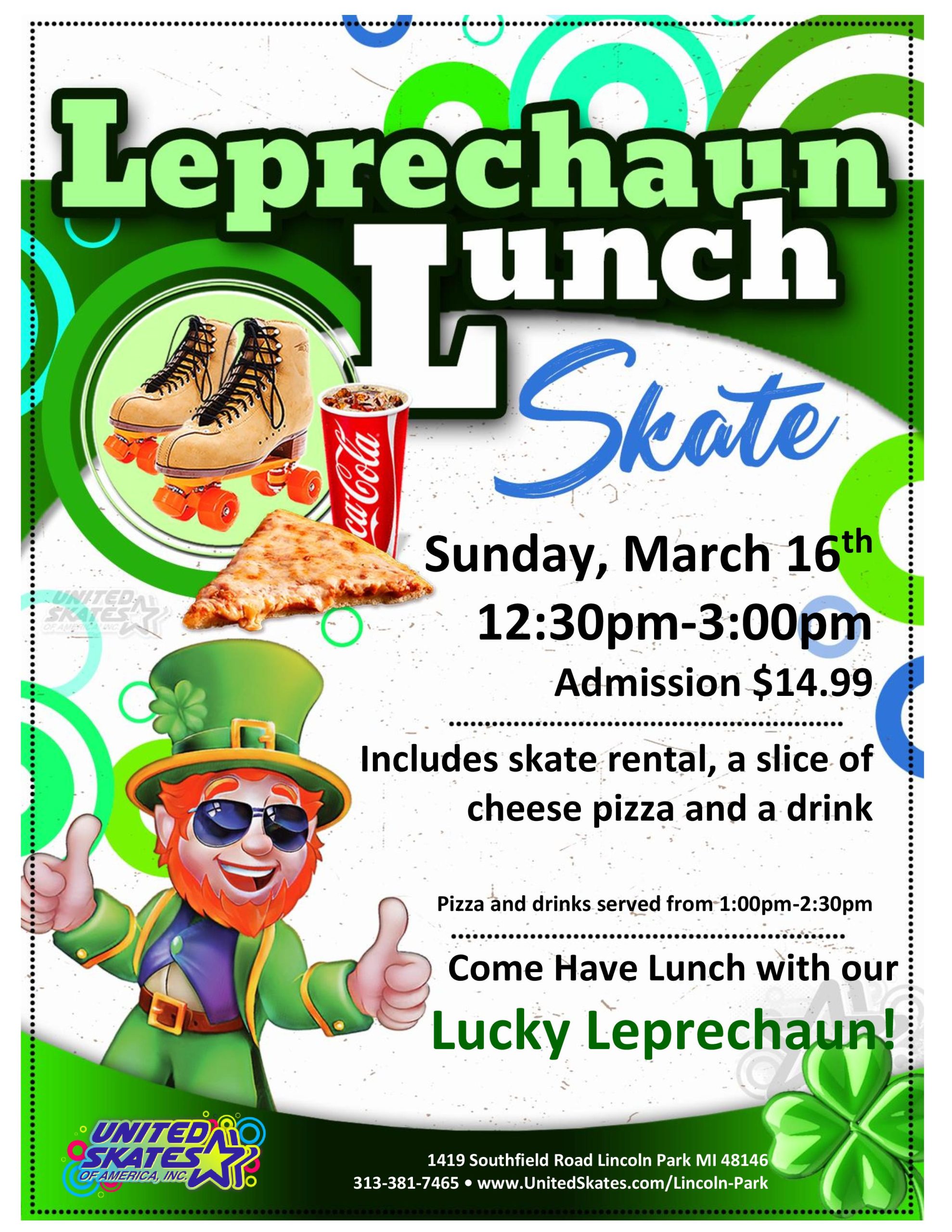 Great News-our beloved leprechaun is back, and he’s bringing something special with him! He’s hosting his very own lunch skate, and you’re invited to join the fun! This is the perfect opportunity to take a break, enjoy a delightful lunch, and skate with friends while soaking in the festive atmosphere. Sunday, March 16th 12:30pm-3:00pm Only […] |