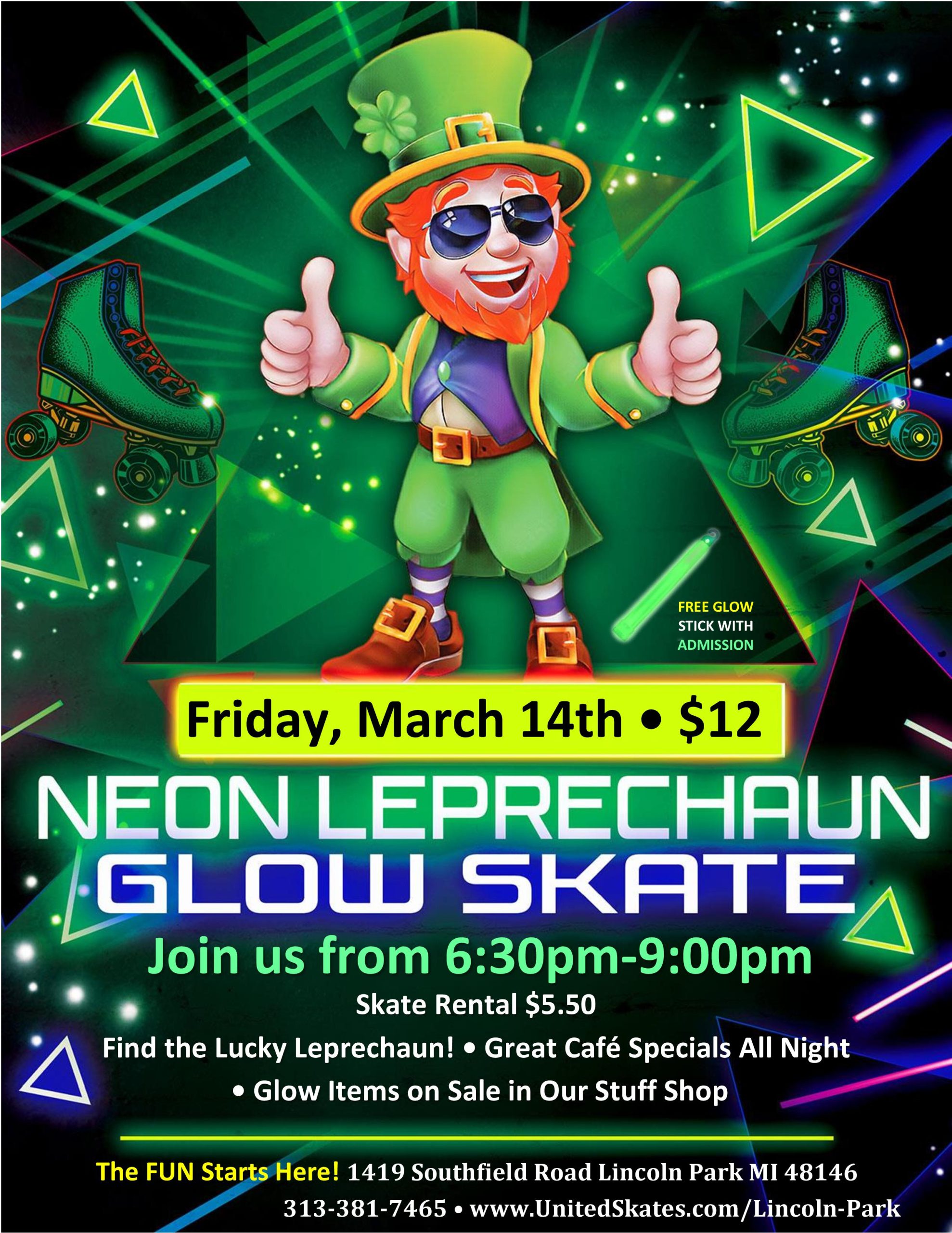 It’s that exciting time of year again-St. Patrick’s Day Weekend is here, and we’re all set to kick off the festivities in style! Join us for a spectacular neon skate, hosted by our very own enchanting leprechaun! Friday, March 14th 6:30pm-9:00pm Admission $12.00 Skate Rental $5.50 Prepare to illuminate the skating rink with dazzling colors […] |