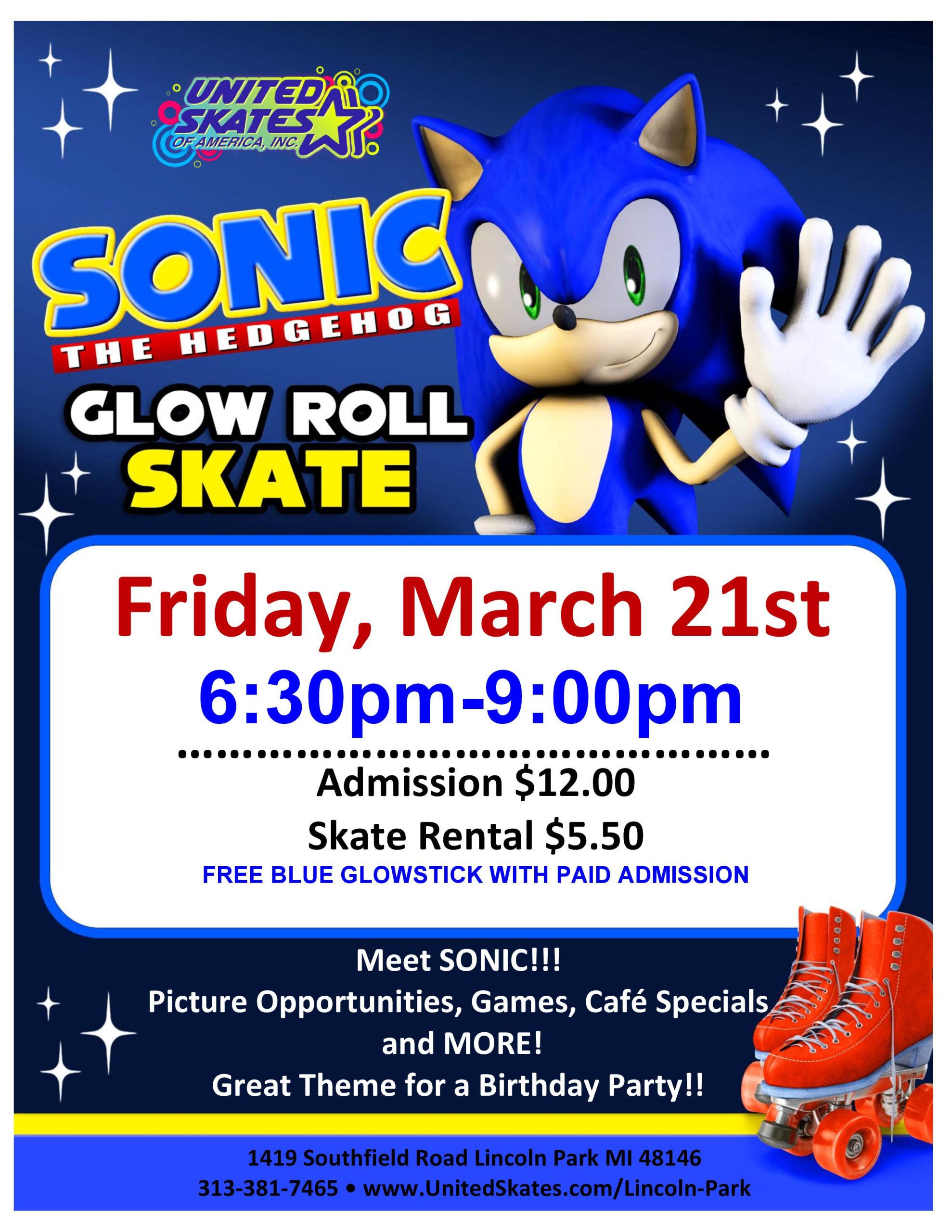 We can hardly contain our excitement-Sonic is making his highly anticipated come back!! The legendary speedster is zooming his way to United Skates Lincoln-Park, and it’s going to be an unforgettable event. Get ready for an action-packed night filled with skating, fun activities and a chance to meet the fastest hedgehog around! Friday, March 21st […] |