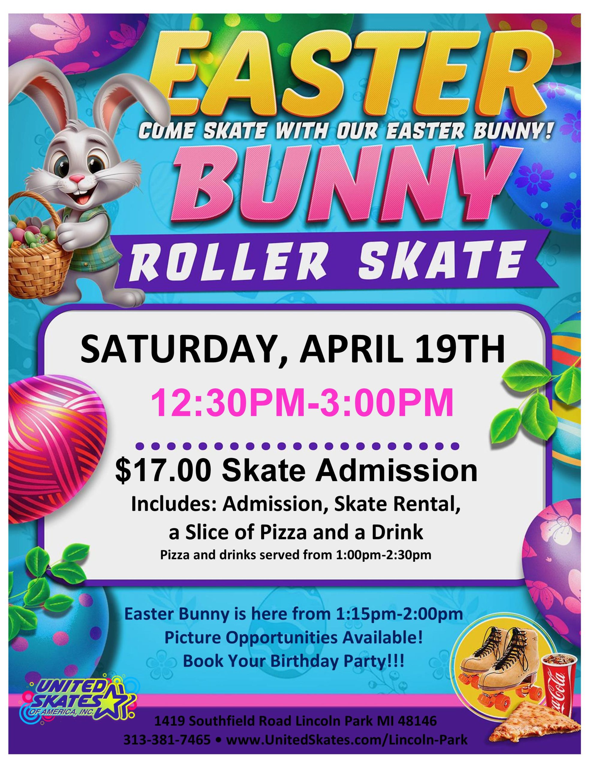 Hop on over for a fantastic lunch skate hosted by the Easter Bunny! Join us for an afternoon of fun, laughter, and skating as we celebrate Easter in style. Saturday, April 19th 12:30pm-3:00pm Only $17.00 includes admission, skate rental, a slice of cheese pizza and a drink Pizza and drinks are served from 1:00pm-2:30pm Enjoy […]