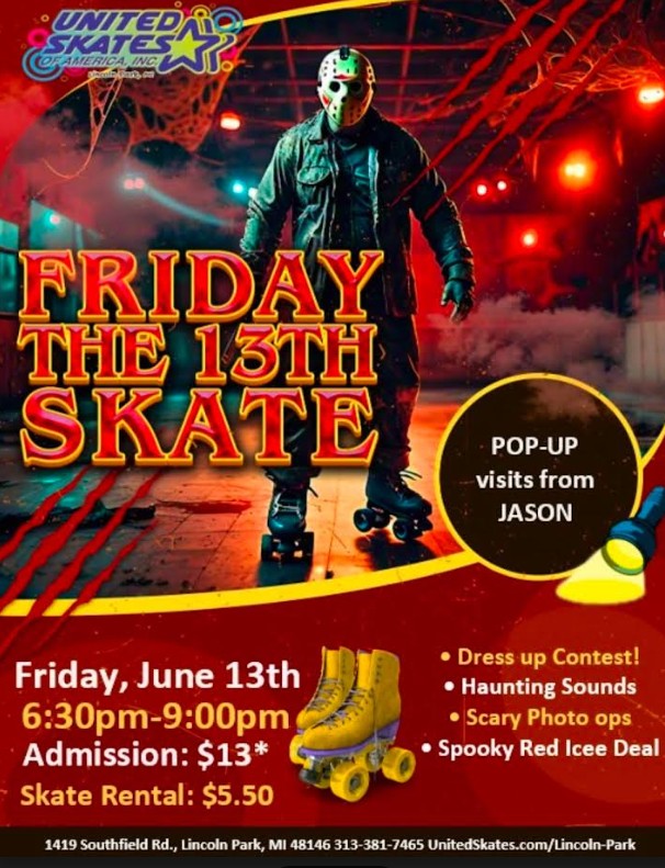 For the first time ever, Jason is making a thrilling grand appearance for Friday the 13th! Get ready for an unforgettable experience as you try to spot him during our rolling blackouts and surprise pop-up visits. You’ll never know where he might show up next. Friday, June 13th 6:30pm-9:00pm Admission $13.00 Skate Rental $5.50 Don’t […] |