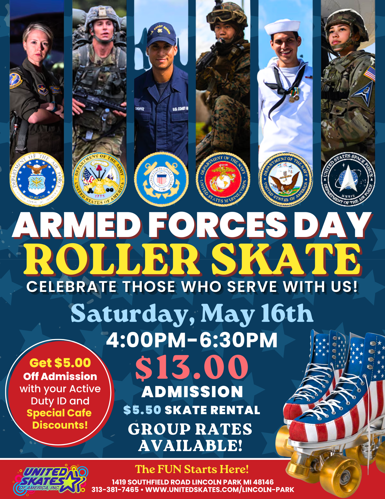 Armed Forces Celebration Skate Join us as we honor and celebrate the brave men and women who serve our country! Come out for a fun-filled skating session with music, games, […]