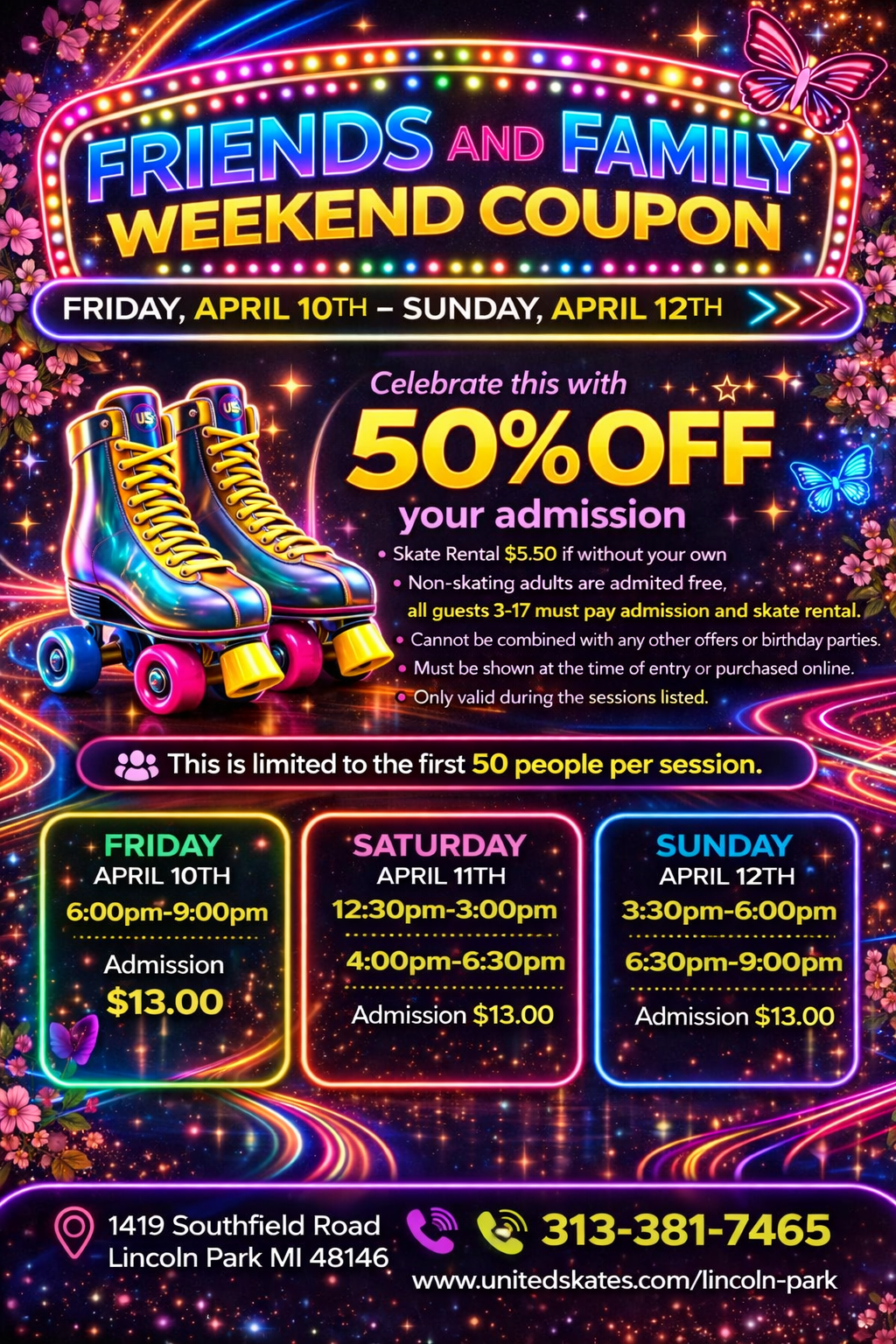 Get ready for an unforgettable weekend of fun, music, and skating! Join us for our Friends & Family Weekend and take advantage of an amazing deal — 50% OFF admission […]