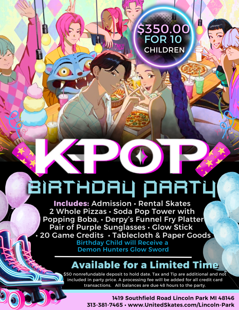 The world’s greatest kids skating birthday party destination is right in your neighborhood at United Skates. Our Lincoln Park skating rink is the best spot for birthday parties in Michigan! We know birthdays are special so we will give you an experience you’ll never forget with a party host, food, skating, and more. The best part is we do all the work so you can have all the fun!