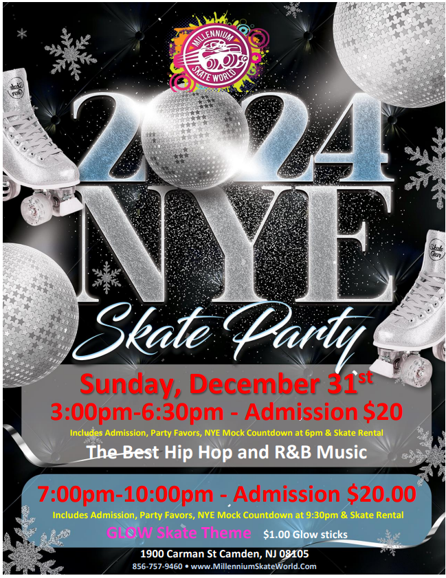 Only $20 includes Admission, Skate rental, Party Favors, Mock Countdown at 6pm
