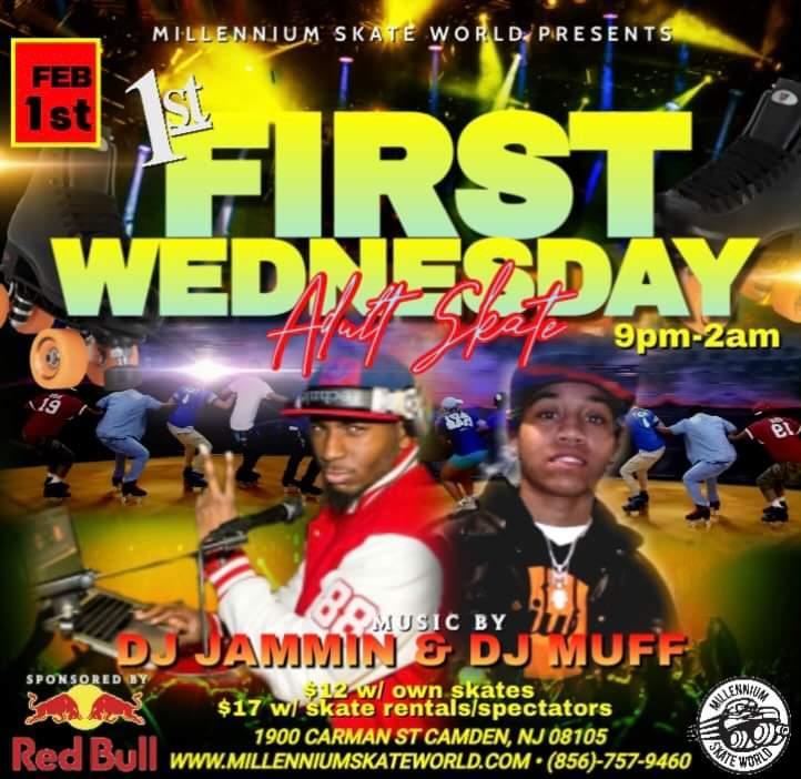 Adult Night Skate every Wednesday 9pm-1:30am 1st Wednesday extended until 2am DJ Jammin, DJ Ed and Guest DJ's Hip Hop, R&B and House Music $12 Admission with own skates $17 Admission with rental skates/Spectators