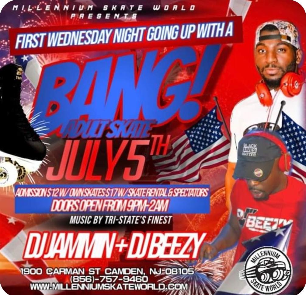 Wednesday Adult Night Skate 9pm-2am featuring DJ Jammin plus DJ Beezy $12.00 with own Skates $17.00 with Rental skates/Spectators |