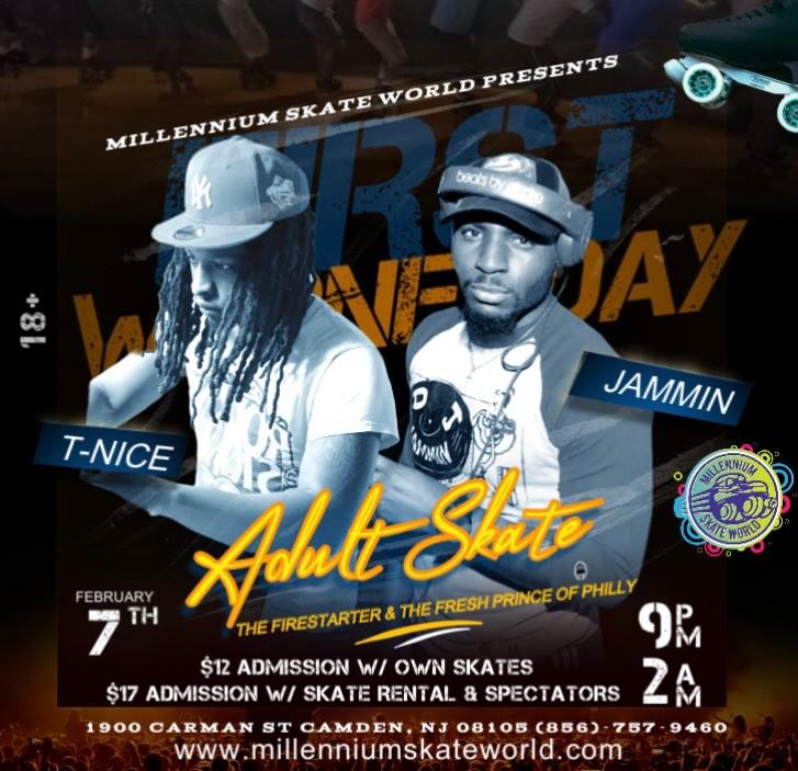 Adult Night Skate 18+ featuring DJ Jammin plus DJ T-Nice Get your ROLL on to your favorite Hip Hop, R&B and House Music 9pm-2am Celebrate your Birthday Get Together with family and friends |
