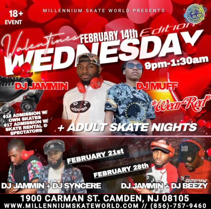 Adult Night Skate featuring DJ Jammin and DJ Beezy 9pm-1:30am $12 with own skates $17 with rental skates/spectators
