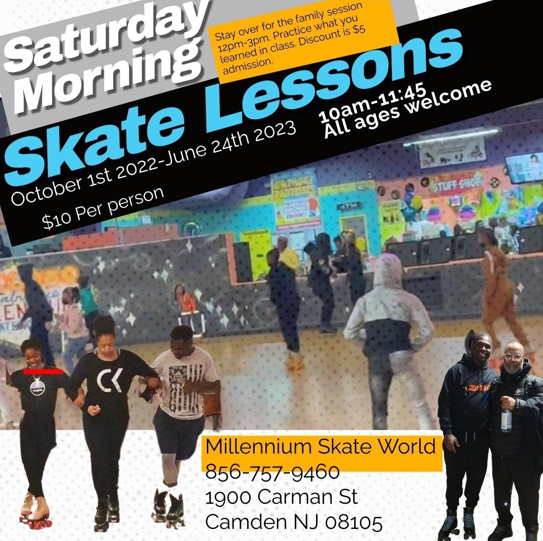 Learn Roller Skate Styles Beginners Intermediate Advanced All ages are welcome $10.00 per person includes Admission, Skate rental and Lesson *Stayover, practice what you learned during Family Session 12pm-3pm $5.00 per person City of Camden is sponsoring the 1st (20) Camden Residents to complimentary lessons expires December 17th. Must show ID for proof of residency.