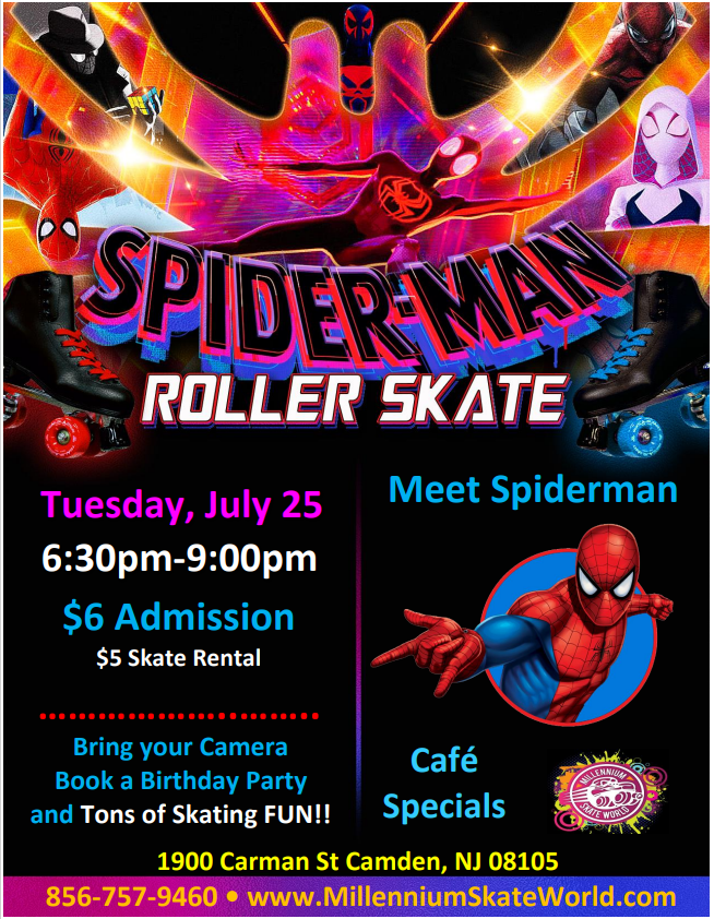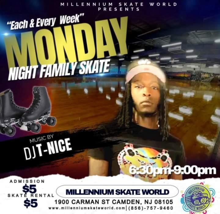 Family Fun MJ Tribute Roller Skating 3pm-6:30pm Admission $10.00 Skate rental $5.00 Perfect day or a Birthday party Book a Group of 20 people or more Playing a Special Set of MJ songs ~~~~~~~~~~~~~~~~ Family package for 4 people $69.99 (4) Admission, (4) Skate rental, (4) Slices of pizza and (4) 8oz drinks