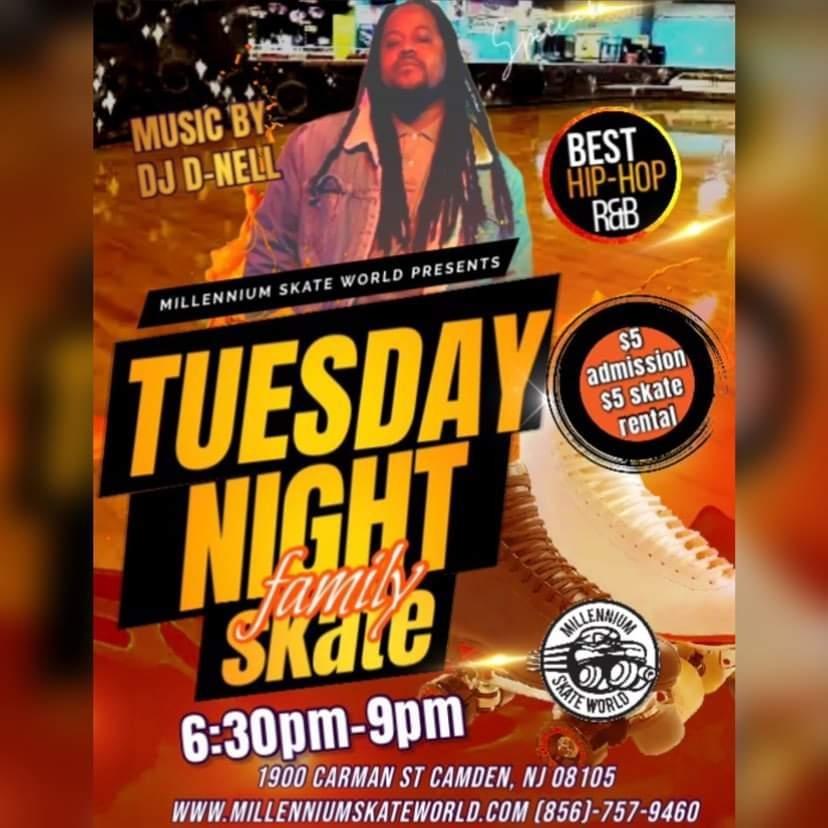 Tuesday Night Family Skate 6:30pm-9:00pm $5.00 Admission and $5.00 Skate rental Add a Slice of Pizza and Drink $5.00 Special Theme Nights Costume Character appearances Game Night Schedule a Birthday party Fundraisers Get Togethers with family and friends |