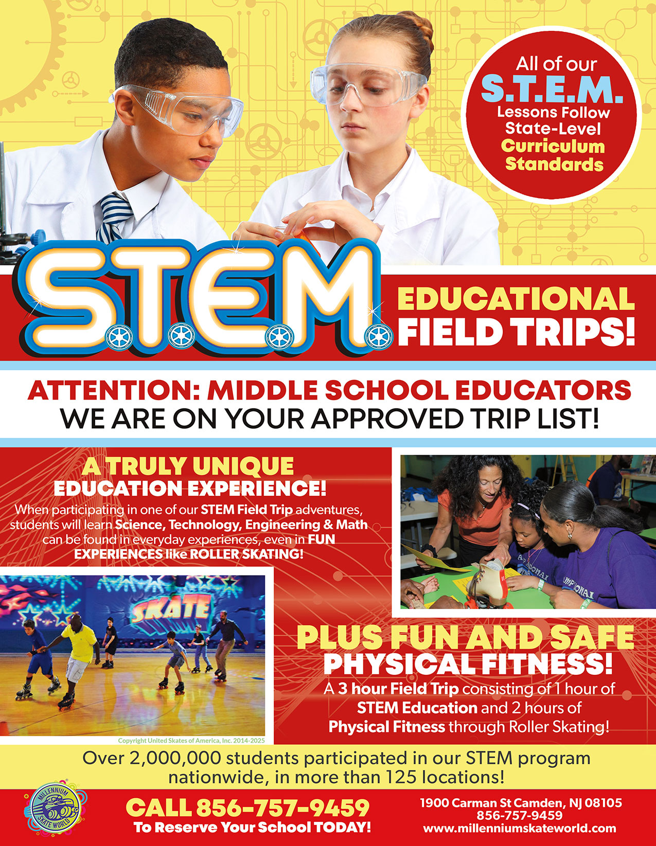 Introduce your students to a unique educational STEM field trip in Camden, NJ at Millenium Skate World that gets them excited about learning! Students will learn how the concepts of science, technology, engineering, and math can be found in everyday experiences, even fun experiences like roller skating!