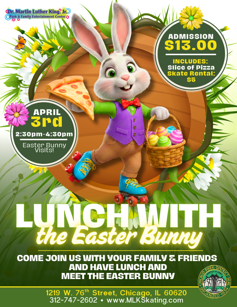 School is OUT… so let’s do lunch the FUN way! 🎉🛼 Bring the kids out while they’re on break and enjoy lunch, laughs, and photo moments with the Easter Bunny!