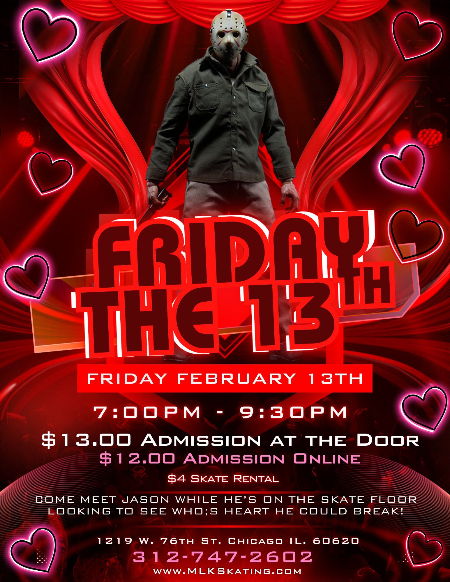 Join us for a dark, thrilling, heartbreak-themed skate or bowl night with a special appearance by the ultimate heartbreaker — Jason Voorhees.