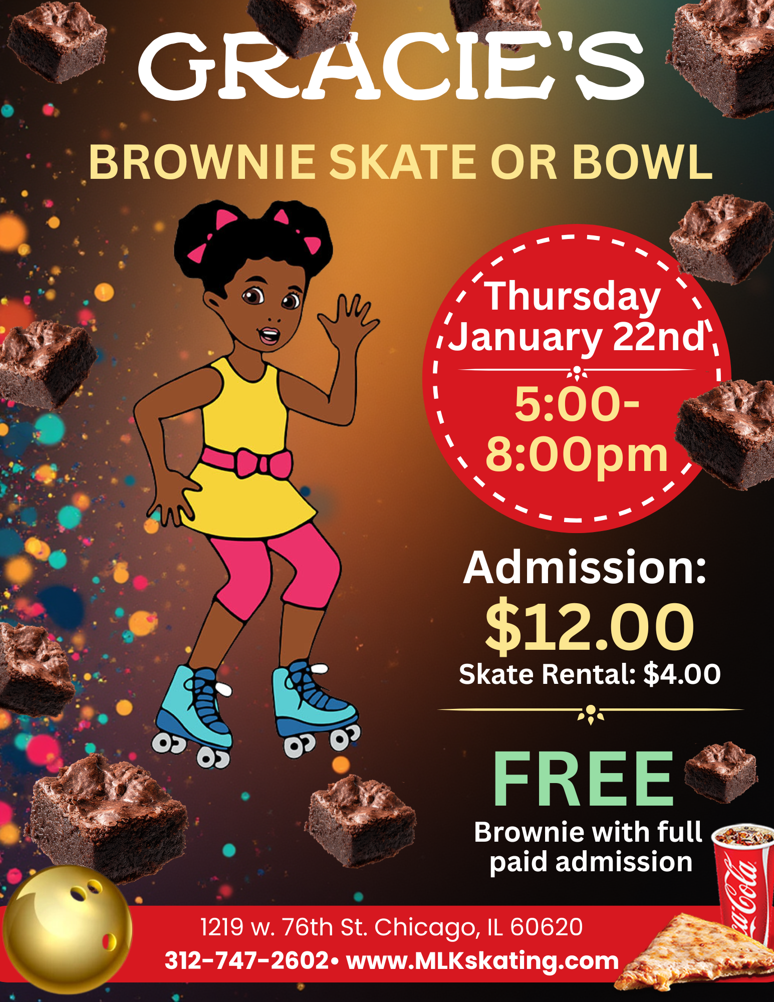 🎶✨ GRACIE’S CORNER BROWNIE SKATE OR BOWL PARTY! ✨🎶