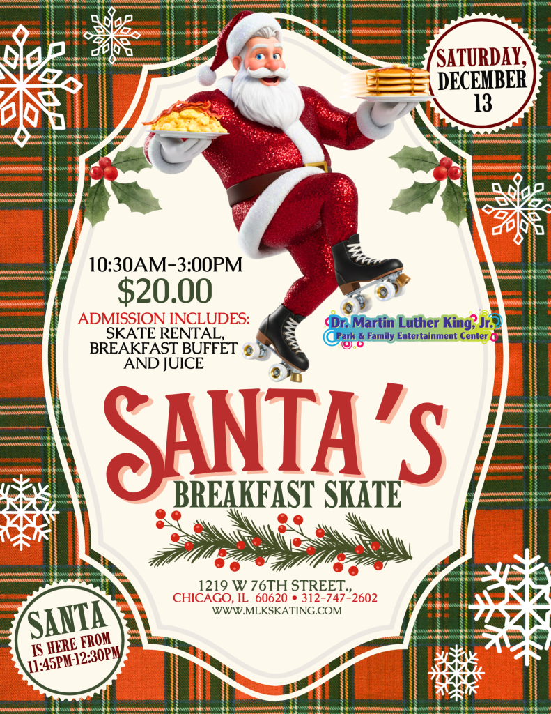 Join us on Saturday, December 13th from 10:30AM–3:00PM for a magical morning of skating, breakfast, and festive fun with Santa himself! 🎄