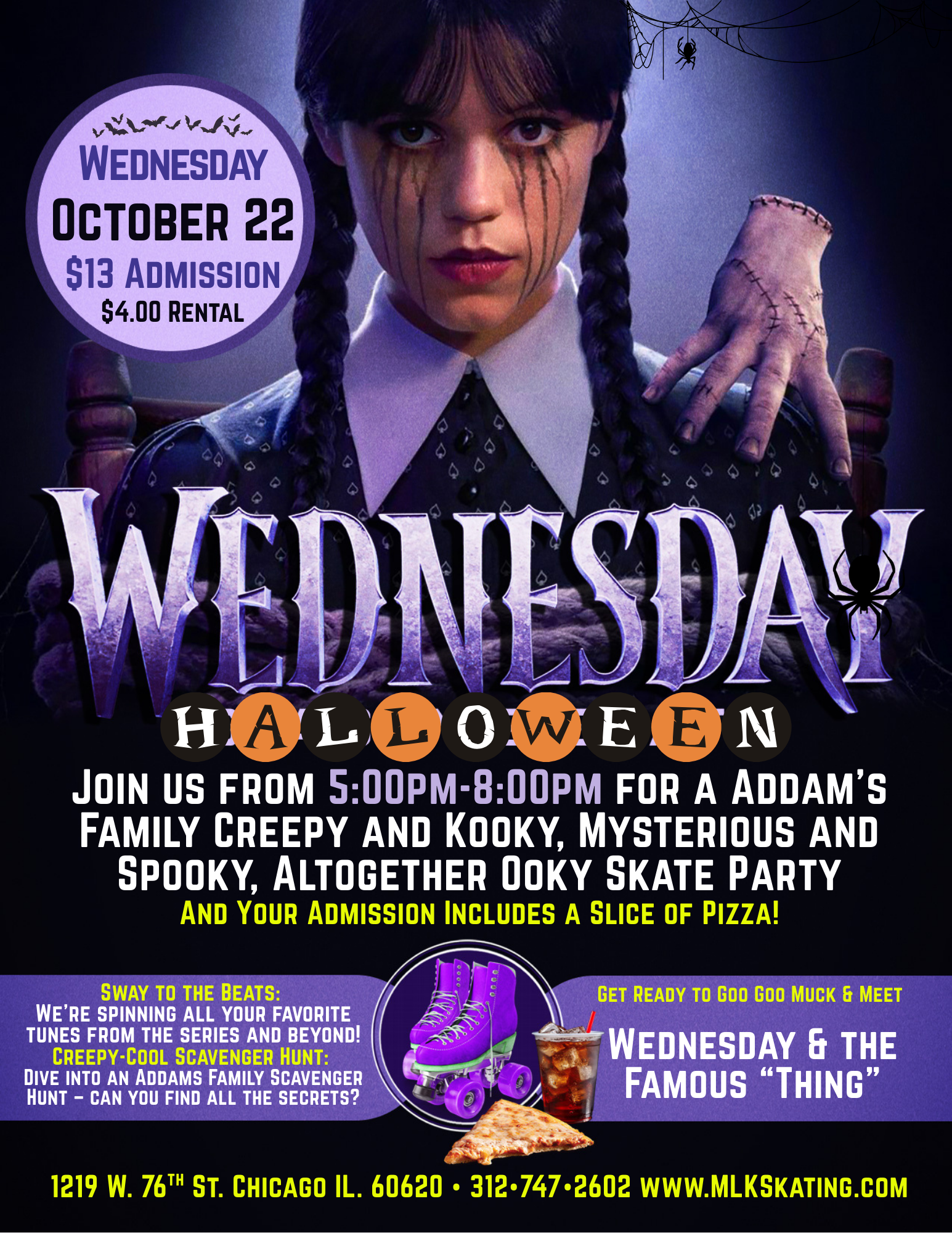 Dr. Martin Luther King, Jr. Park & Family Entertainment Center 1219 W. 76th St., Chicago, IL🎶 Featuring the BEST of EMO Music & TIKTOK Hits all session long! 🔥 Sing it. Skate it. Live it.⚡ Spooky vibes + Halloween energy📸 TikTok-worthy moments everywhere Grab your black eyeliner, your crew, and roll with us for a night of Halloween thrills & emo feels. 💀🖤 $13.00 Admission $4.00 Skate Rental OR $13.00 […]