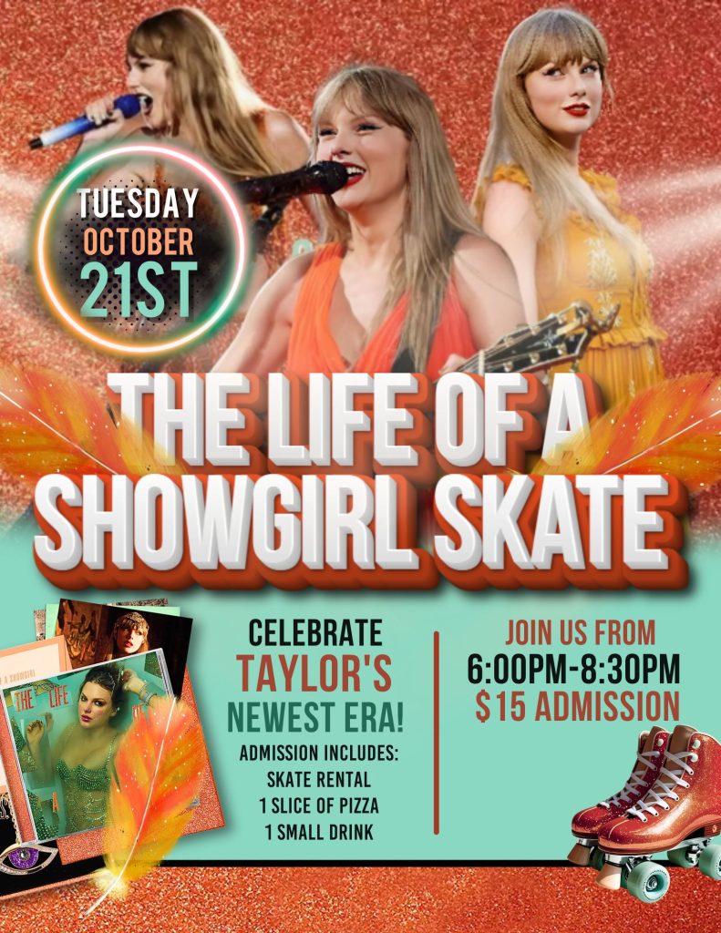 $15 includes: Admission, Skate Rental, a Slice of Cheese Pizza, and a small drink