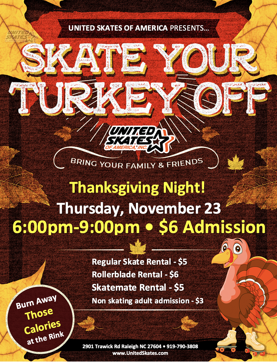 Come Roll with Us Thanksgiving Break! We have Free Dinner Skates, Thanksgiving Skates, Black Friday Skates, Adult Skates & More!