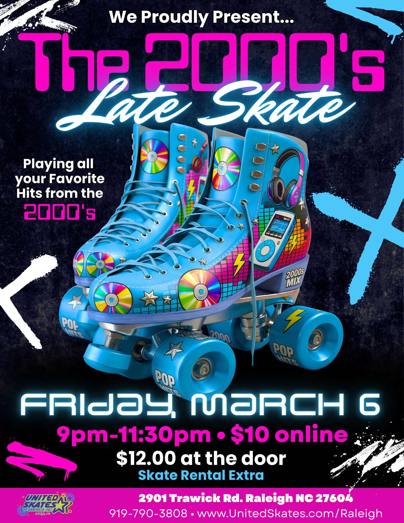 The 2000's Late Skate Click or Tap Here to Purchase Tickets 9pm-Midnight Admission $10 Online/$12 @ the door Skate Rental $6 Rollerblade Rental $7 Adult spectator admission $4 United Skates […]