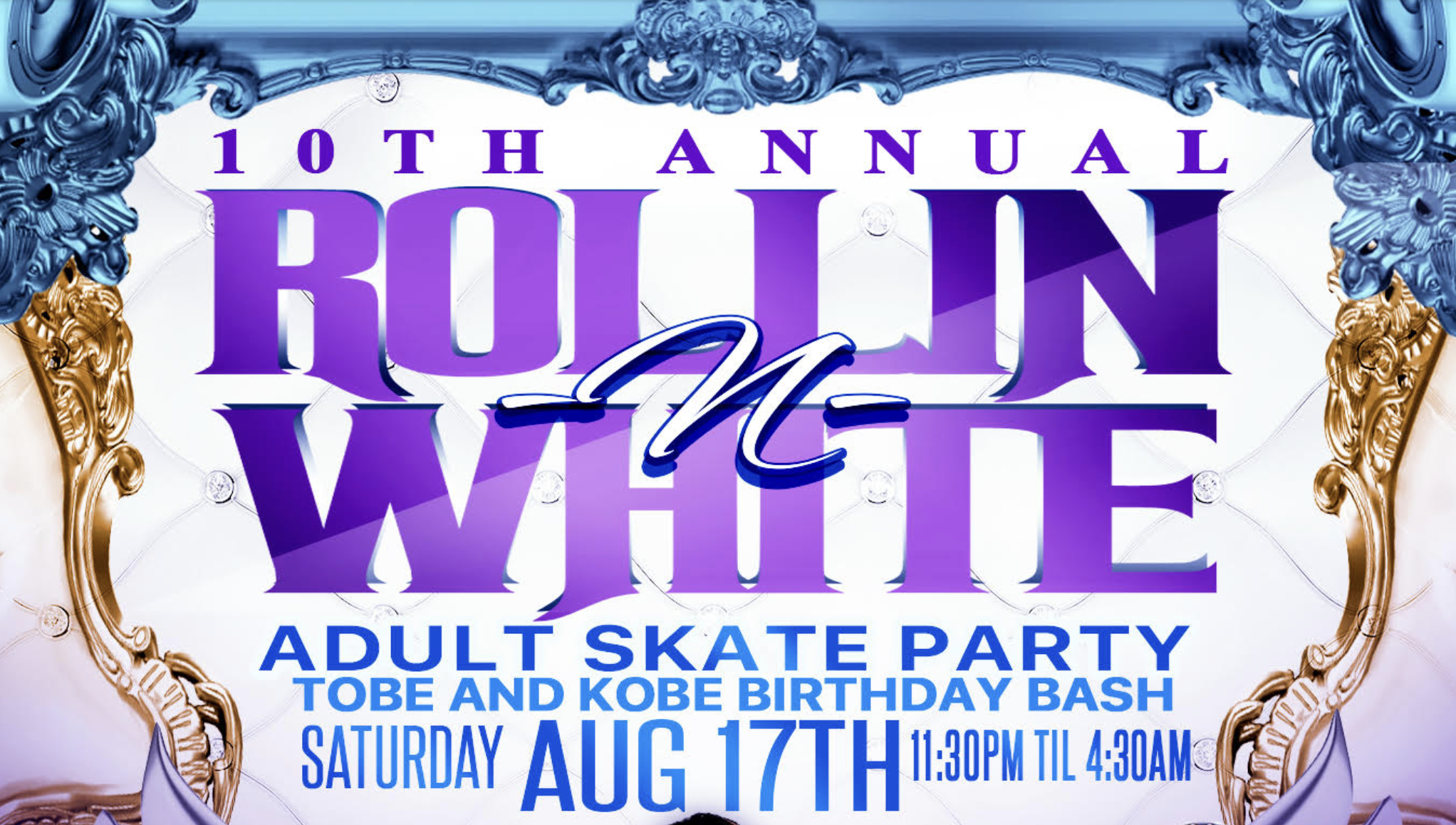 Rollin ‘n’ White Skate Party Ages 18 years and older only Admission $20 Skate Rental $5