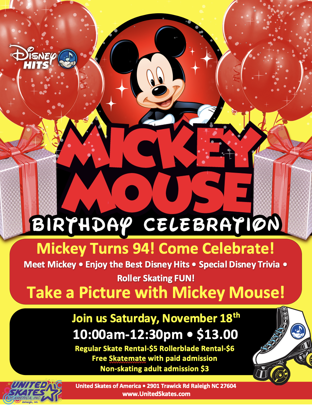 Mickey Mouse Birthday Celebration Nov 18 Mickey Mouse Birthday Celebration Featured 10:00 am - 12:30 pm