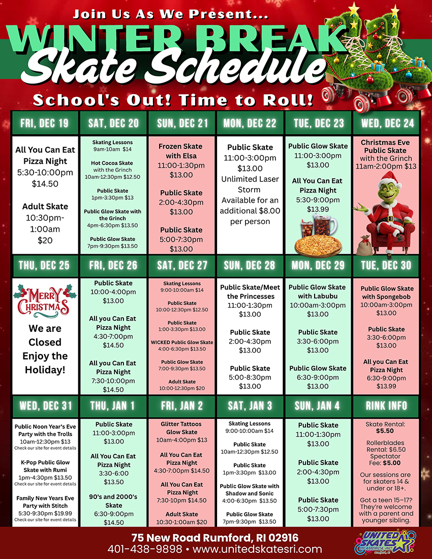 Winter Break Skate Schedule — School’s Out, Time to Roll!