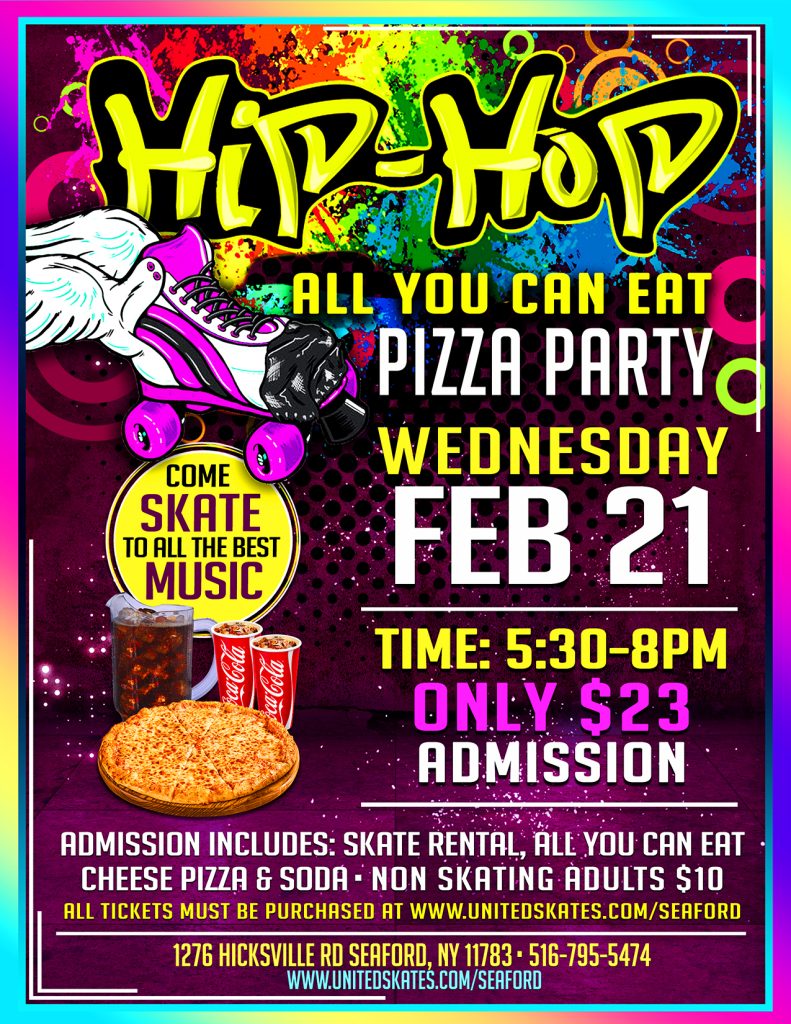 Come join us for an epic night of hip hop and roller skating at the United Skates of America Roller Skating Center! Get ready to groove to the hottest beats while showing off your killer moves on wheels. This in-person event is the perfect opportunity to unleash your inner skater and immerse yourself in the vibrant world of hip hop while enjoying All you can eat pizza. So lace up your skates, bring your crew, and let’s roll together at the All You Can Eat Hip Hop Skate!