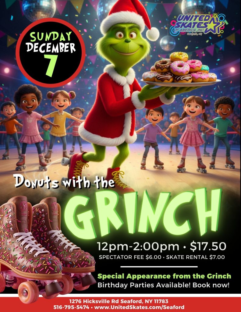 🎄 Come skate, snack, and snap a pic with the Grinch himself!