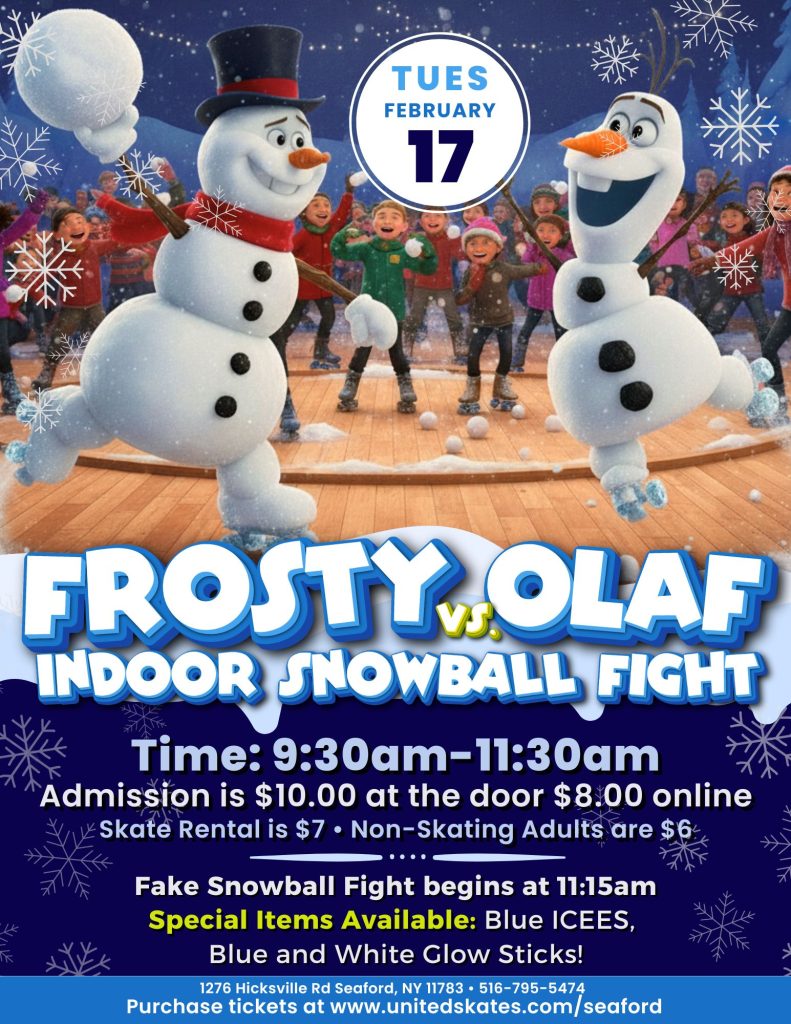 ❄️⛄ FROSTY vs OLAF INDOOR SNOWBALL FIGHT! ⛄❄️ Get ready for the coolest winter break event in Seaford! Frosty and Olaf are sliding back into the rink for an epic, family‑friendly snowball showdown — and you’re invited.