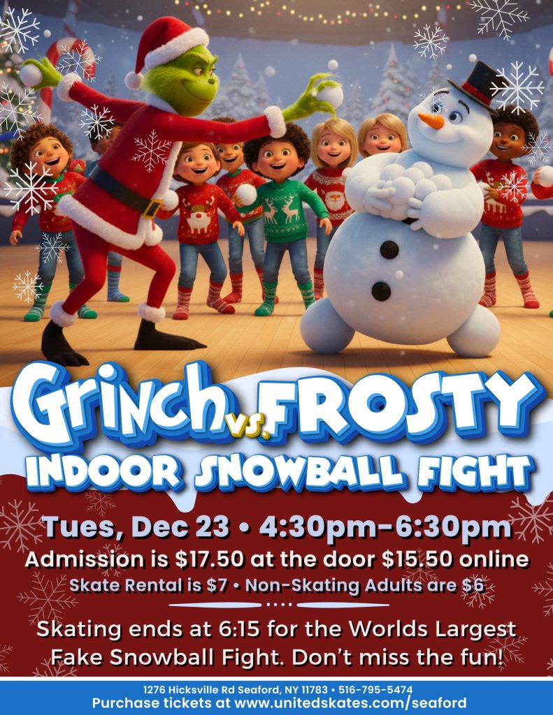 π Skating ends at 6:15 PM for the Worldβs Largest Fake Snowball Fight β donβt miss the fun! ποΈ Grab your tickets now: www.unitedskates.com/seaford