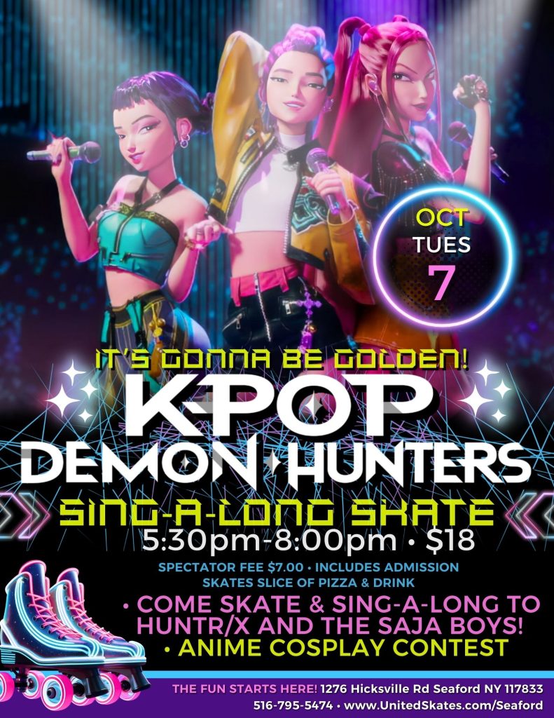 Calling all K-pop fans and demon slayers! Join us for a sing-along skate party like no other at United Skates of America – Seaford!