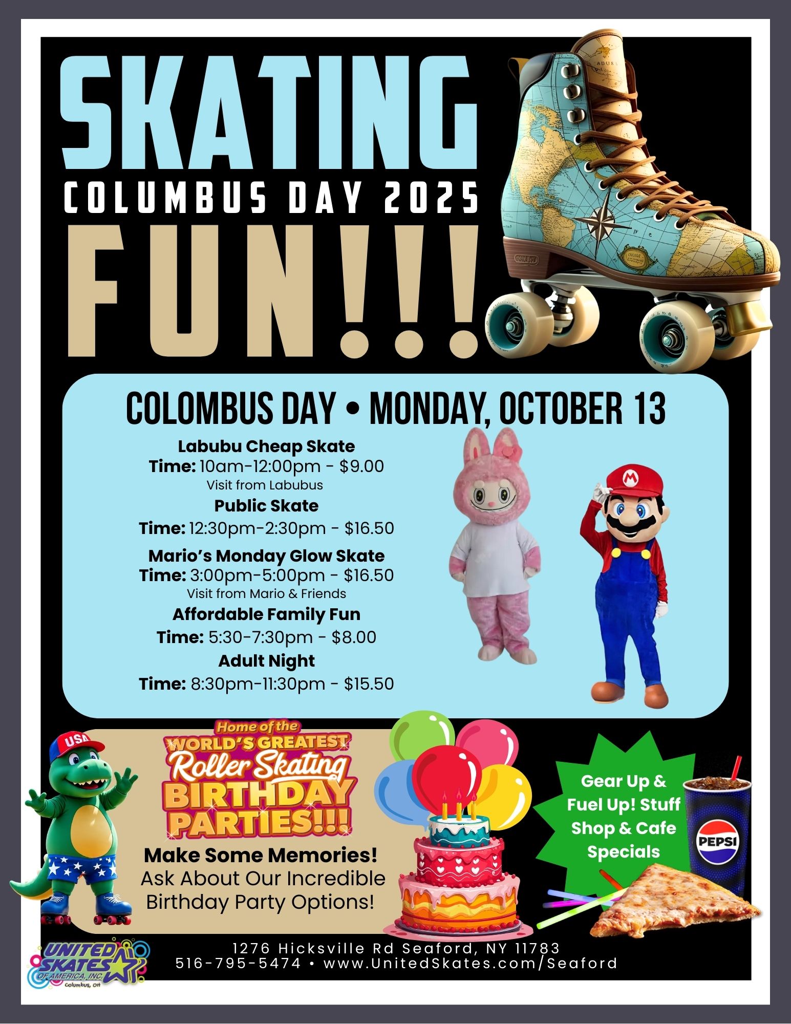 Come join us for a fun-filled day of skating at United Skates of America Roller Skating Center! Whether you’re a beginner or a pro, this event is perfect for all ages and skill levels. Grab your friends and family for a Sunday full of laughter, music, and of course, skating! Lace up your skates and hit the rink for a day you won’t forget. See you there!