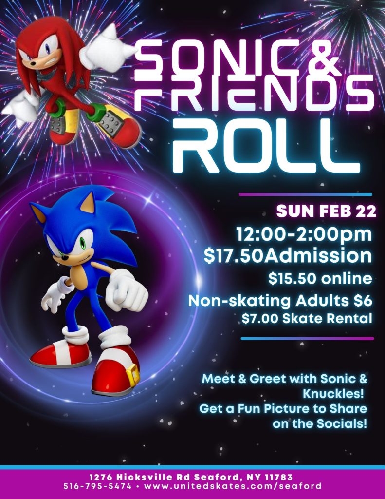 Join us for an epic afternoon of skating, selfies, and fun at Sonic & Friends Roll β featuring a special Meet & Greet with Sonic & Knuckles!