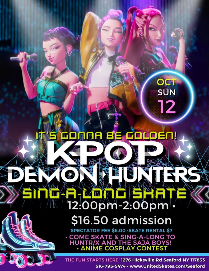 Get ready to roll and rock out at the K-Pop Sing-Along Skate featuring the greatest hits from K-pop Demon Hunters! Here’s the scoop: