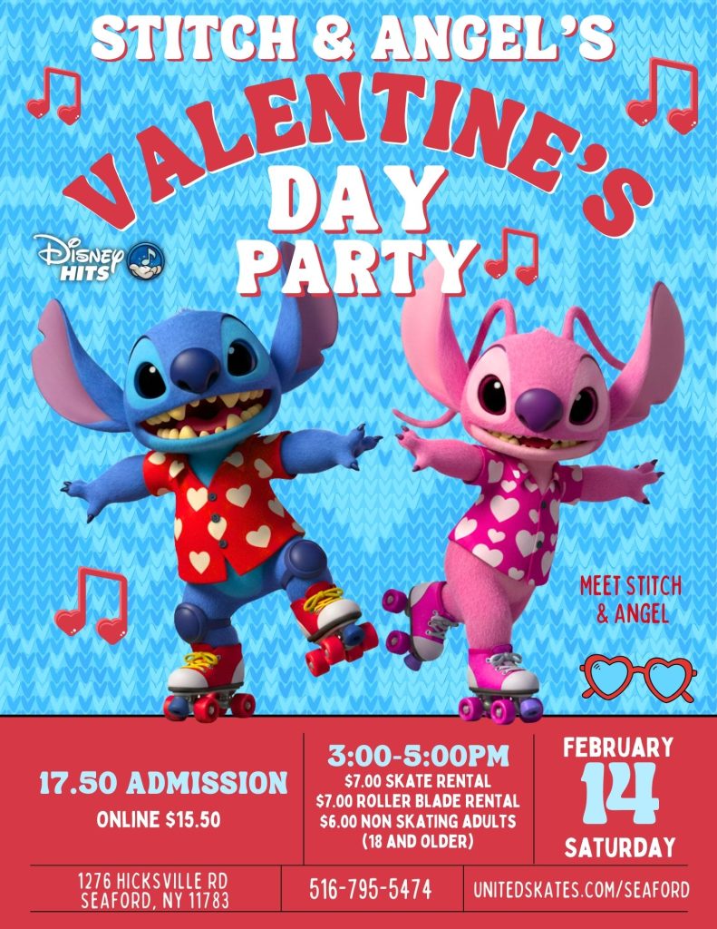 💙💗 Stitch & Angel are bringing the LOVE to the rink this Valentine’s Day 💗💙