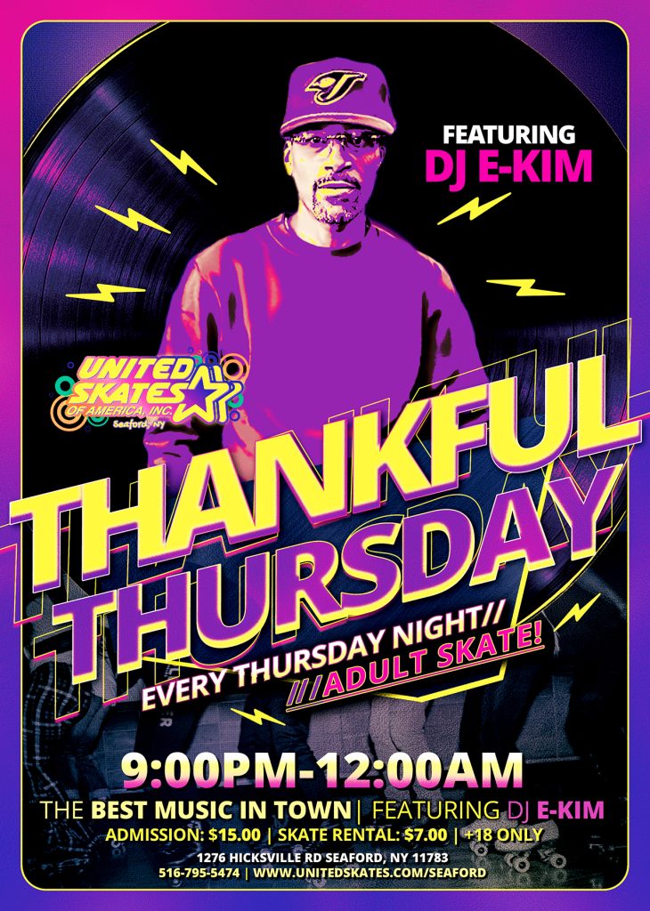 πΌπ Thankful Thursday Adult Night Skate Featuring DJ Ekim! ππΌ