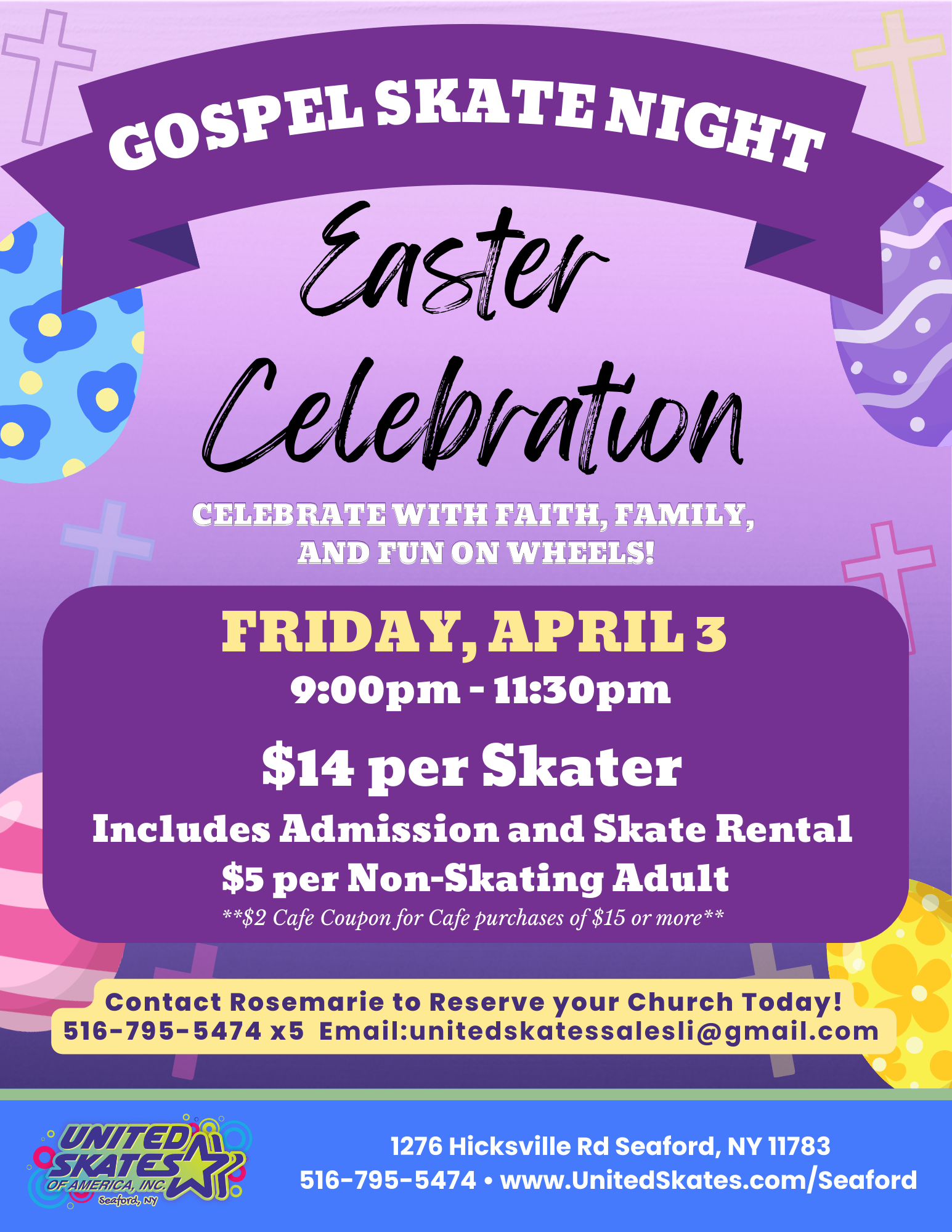 Easter Celebration 🎶✨ Celebrate with faith, family, and fun on wheels! 🗓️ Friday, April 3rd, 9:00 PM – 11:30 PM 🎧 Featuring uplifting Gospel music by DJ Holiday 🍕 Your ticket includes: Admission […]