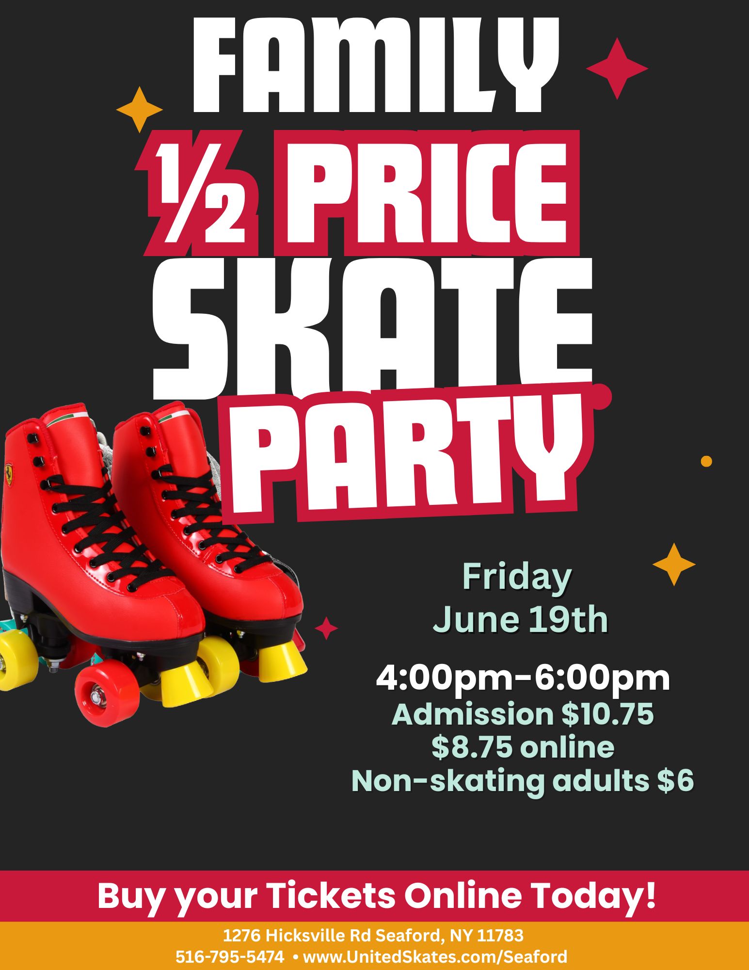 🛼💥 FAMILY ½ PRICE SKATE PARTY! 💥🛼 Bring the whole crew out for an afternoon of rolling, laughing, and making memories — all at an amazing price! 🗓️ Friday, June […]