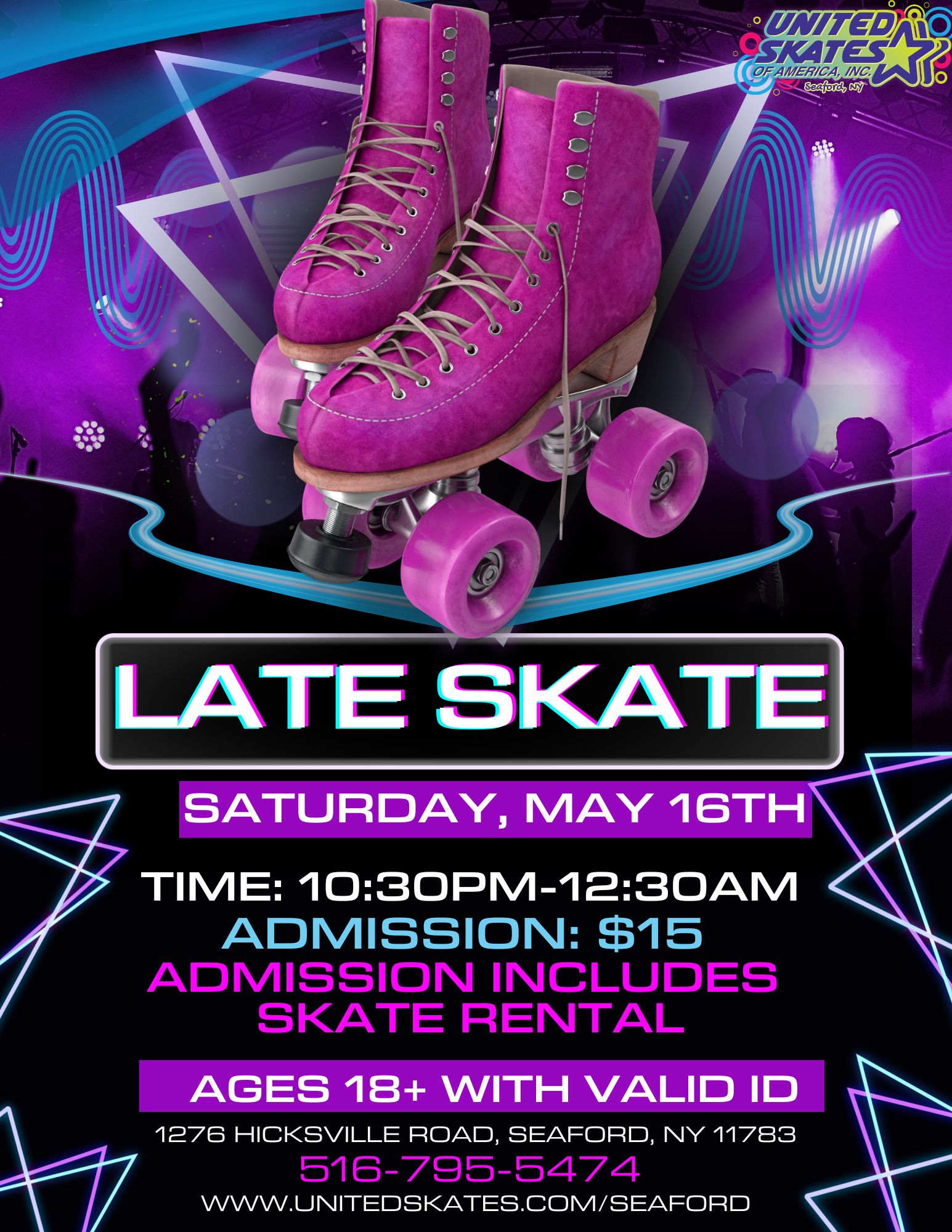 $15 includes admission and skate rental. Ages 18+ with ID